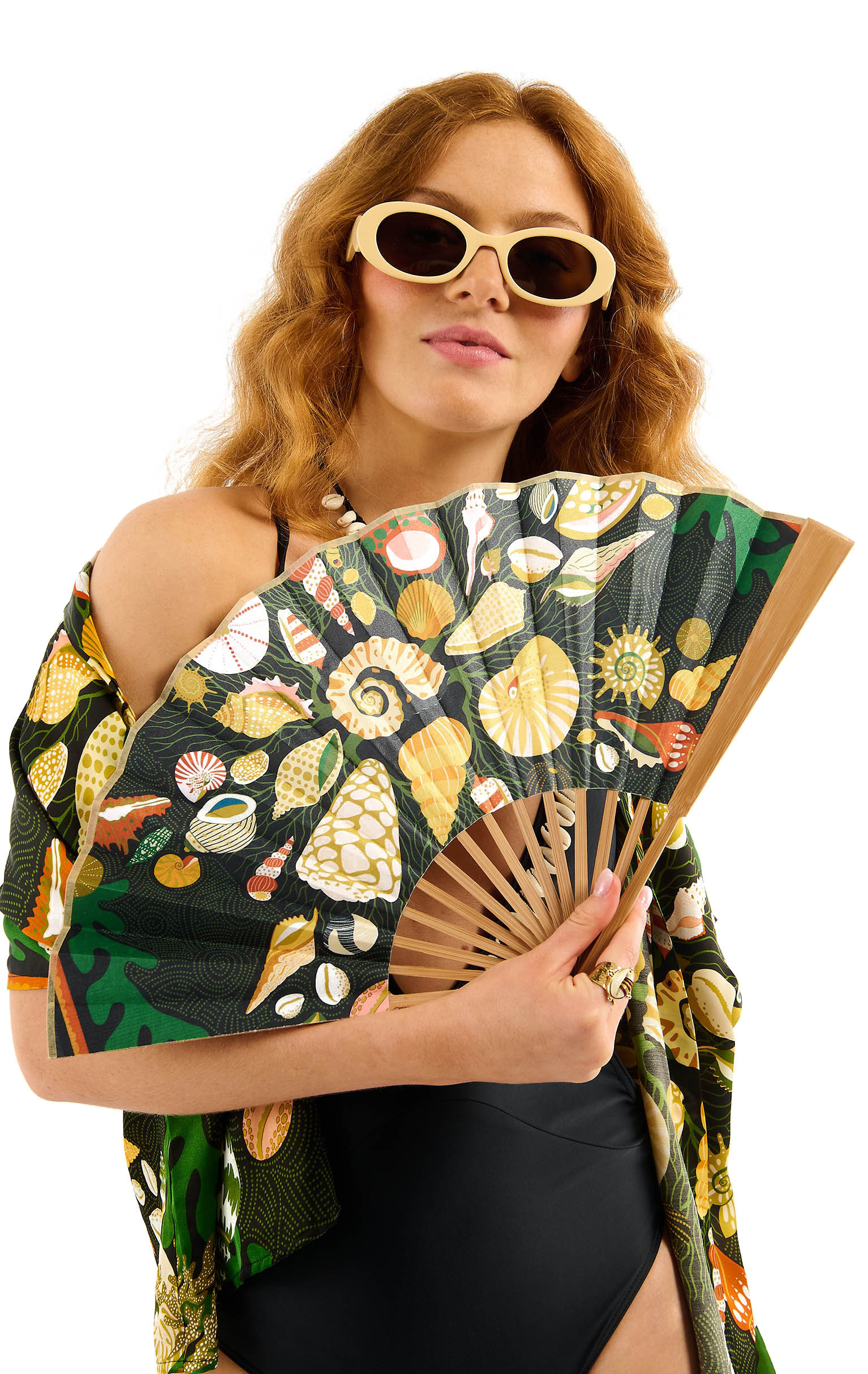 Now the trendy accessory to slip into your festival, beach or evening bag, the fan is adorned with this season's iconic prints.