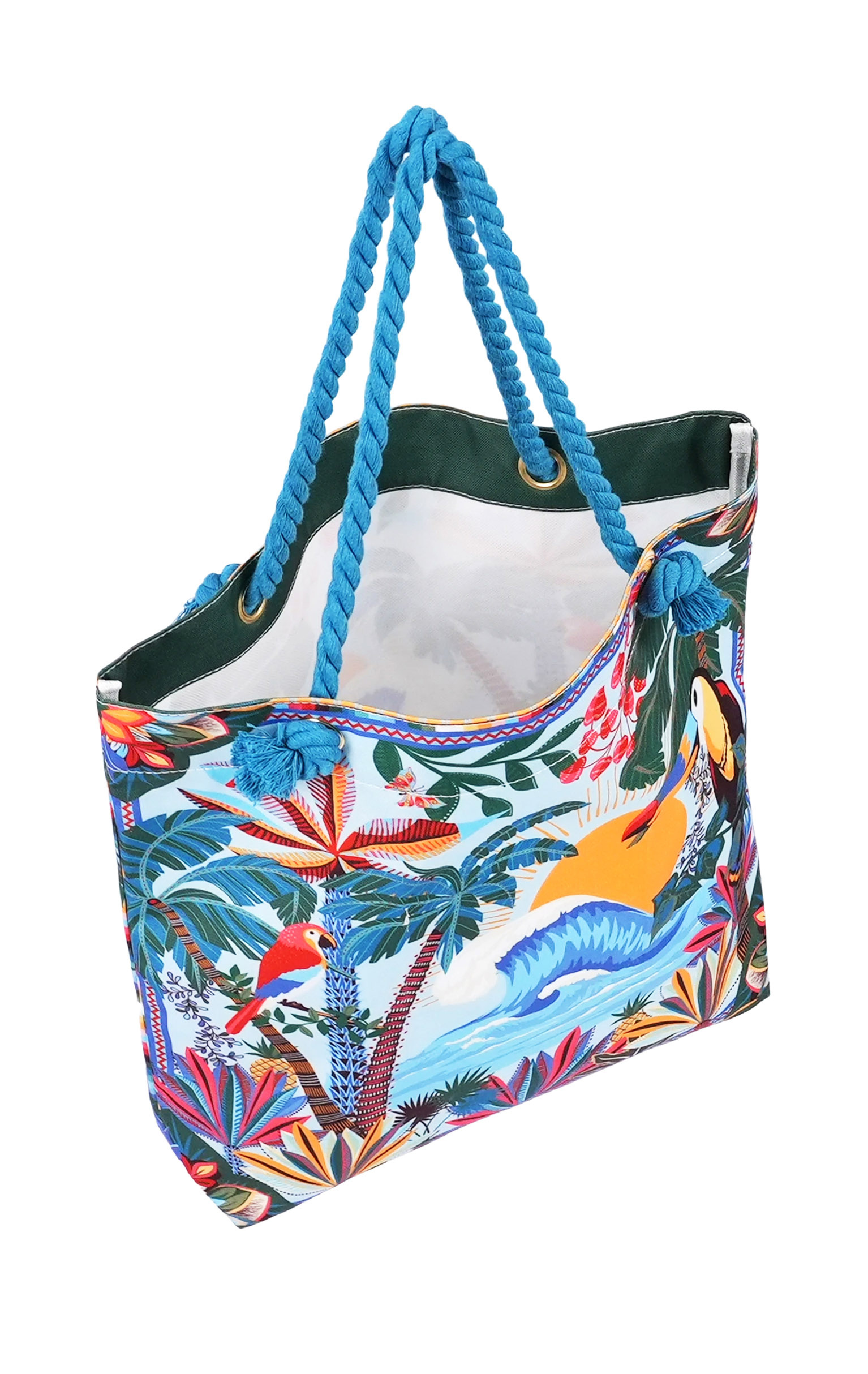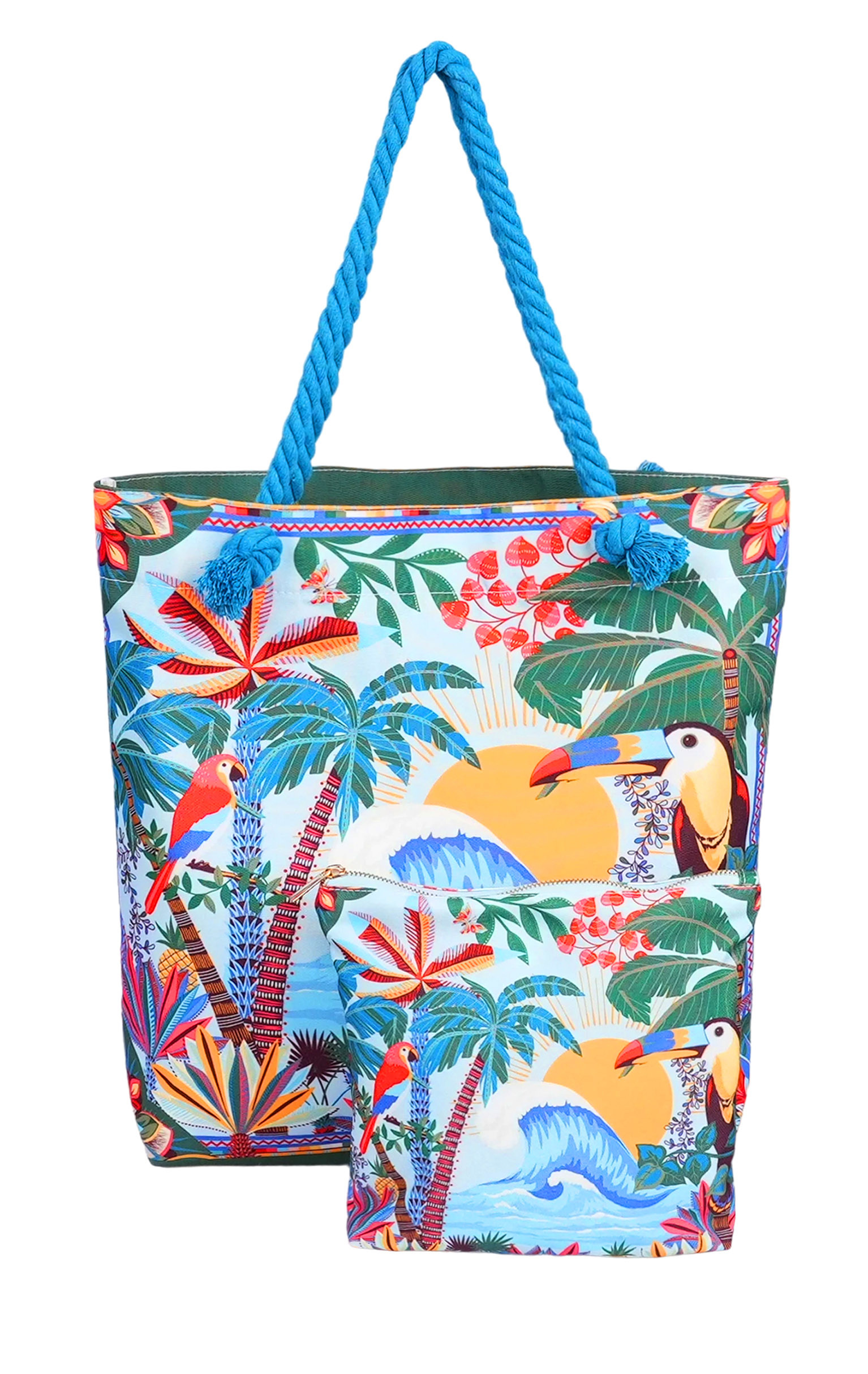 An ideal beach outfit, the DOLCE bag and matching pouch are fully waterproof, perfect for safely slipping on a wet swimsuit. Featuring a wide handle, DOLCE is easy to carry on the shoulder. Dressed in our HAWAÏ print, the bag and clutch radiate birds of paradise, flamboyant parrots, XXL vegetation and stylized waves - a dazzling nod to the ocean, symbol of our summers. Available in three colors, here in its blue version.