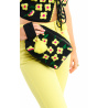Made from soft, structured cotton, the KLERVIE clutch evokes a very Seventies summer, thanks to its adorable embroidered flowers on the front. Matching our KEYRA bra and JODDY scarf, KLERVIE comes in four colors. Here on a black background with fluorescent yellow and pink flowers and a yellow pompom.