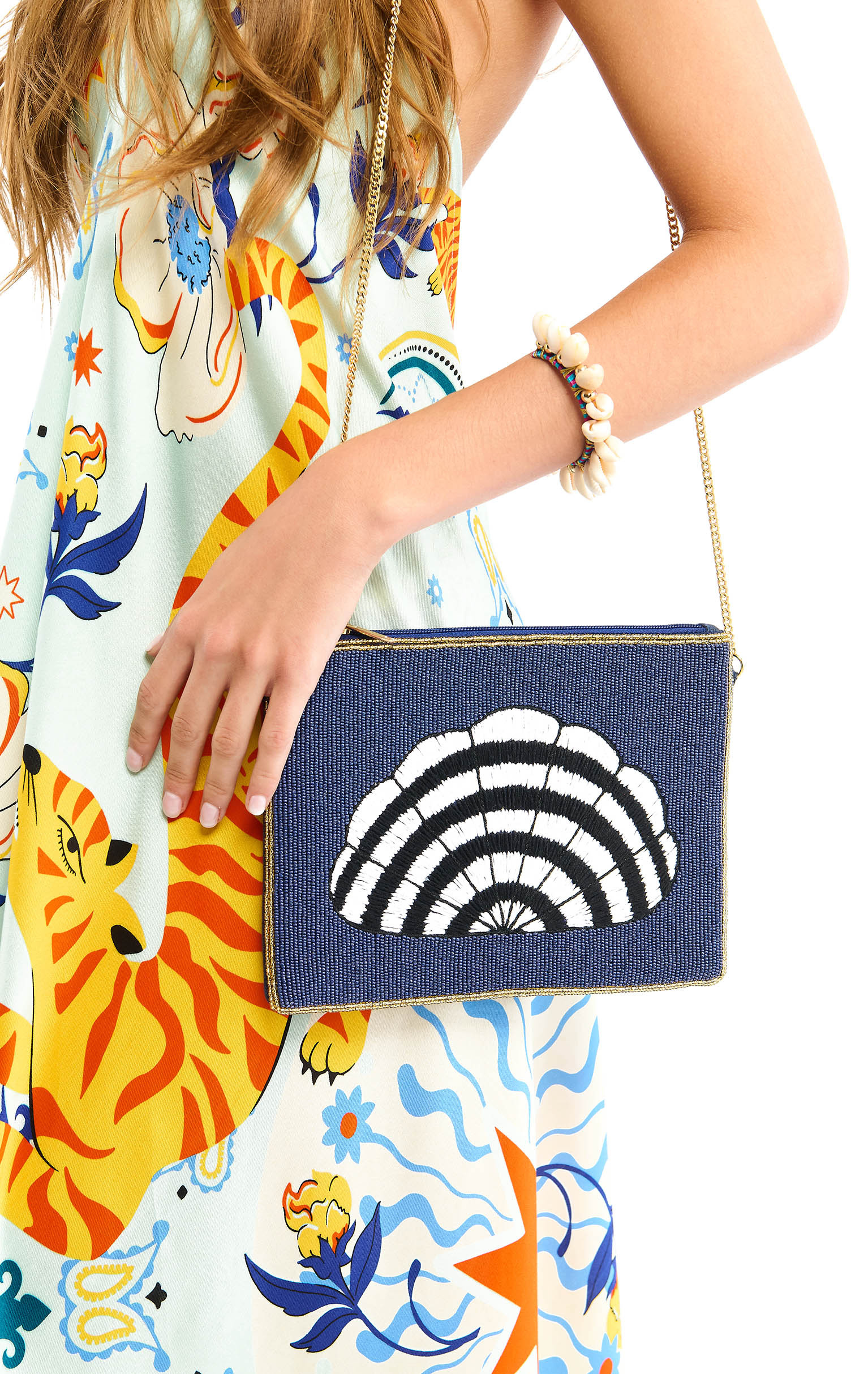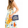In a generous format, the DIENA pouch can be worn close to the body, in the hand or under the arm, proudly displaying a stylized shell woven entirely by hand.