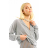 MYA's straight lines are structured by raglan sleeves and an adorable round collar. Echoing the maritime inspiration of this Spring-Summer 2026 collection, its small silver buttons represent exquisite little shells. Available in two colors, it is shown here in its silver version.
