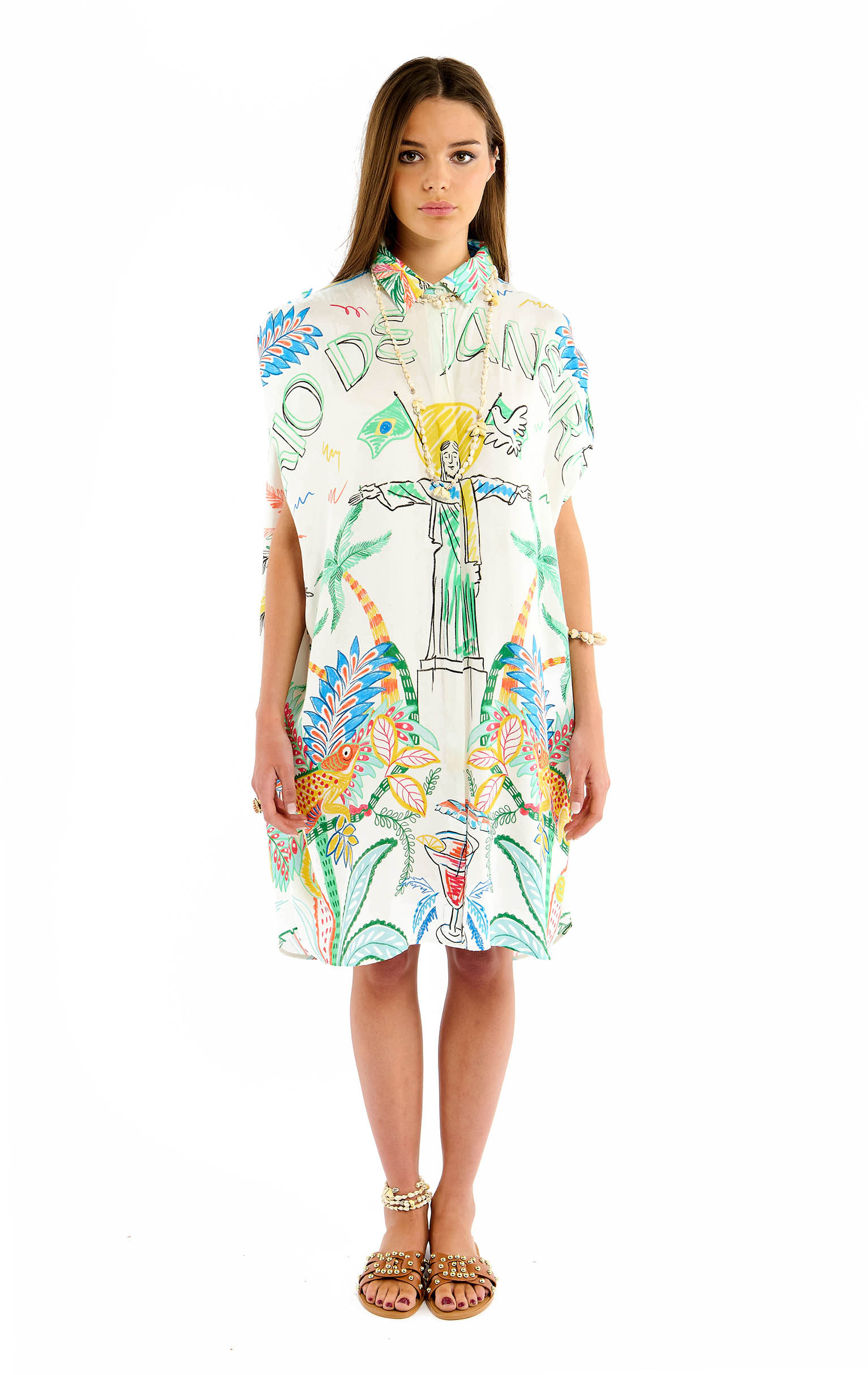 Our prints celebrate the natural treasures of the Brazilian coastline. Echoing exotic seashells gathered on the warm sand, the motifs vibrate on vaporous dresses, oversized bombers and airy caftans. Each piece is designed like a postcard to be slipped on: light, precious, irresistibly free. An icon of this drop, our signature scarf is reinvented in a gentle, poetic interpretation of Corcovado, as if scribbled in a travel diary. A vibrant tribute to Rio, its mystical heights and feverish samba nights. More than a wardrobe, Bahia is an invitation. A promise of an incandescent summer, between movement and softness, between distant horizons and solar sensuality. Let yourself be carried away. The journey has just begun.