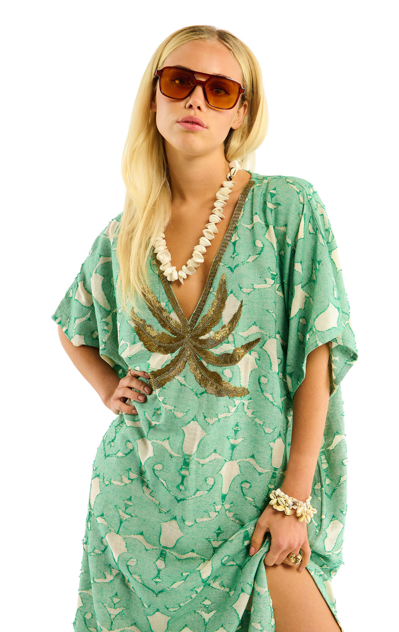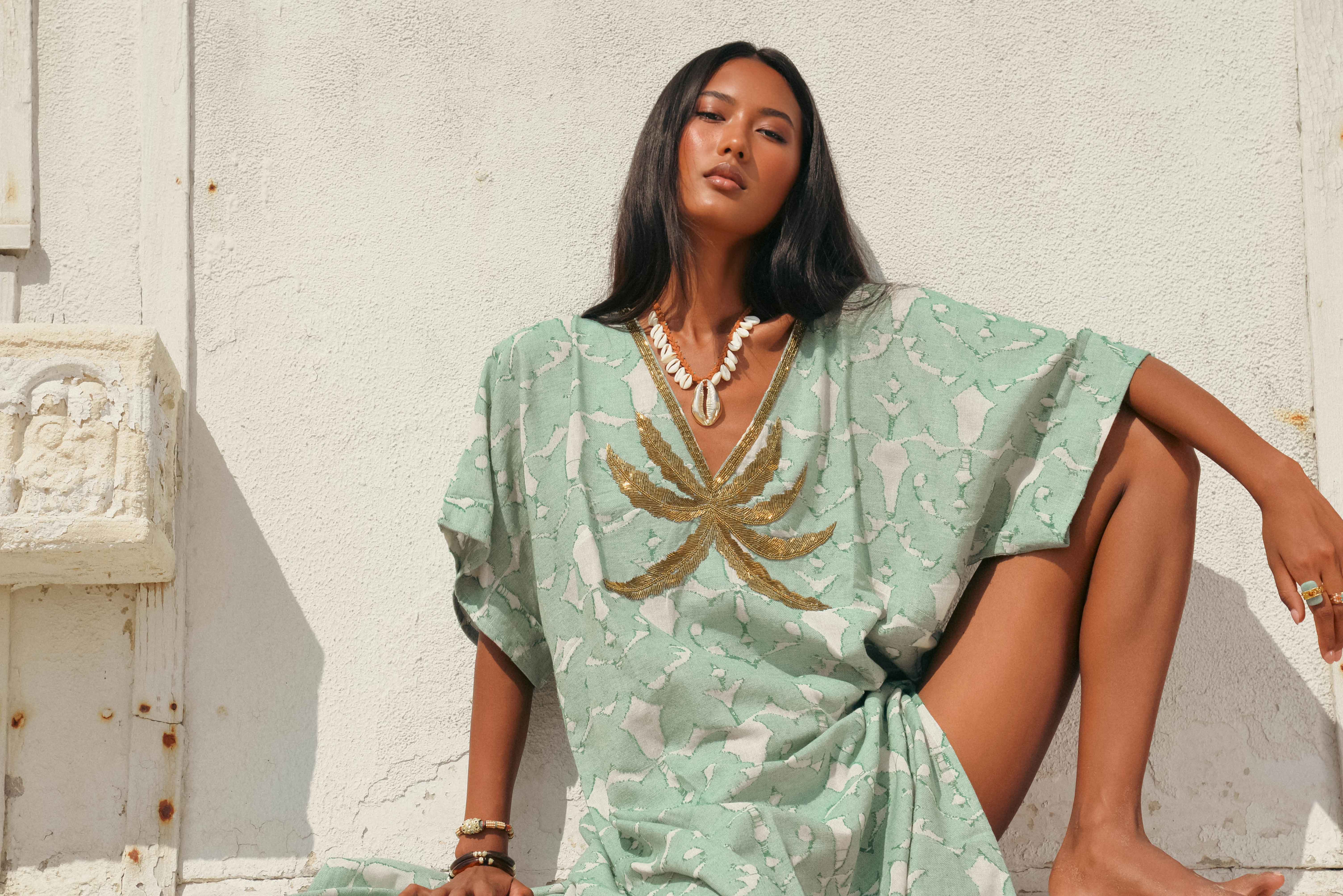 An iconic piece in the Wild wardrobe, the IVANE dress plays the versatility card: a precious caftan that can be worn on the sand or in the evening.