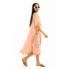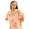 A 70's breeze is blowing through our spring-summer 2026 collection, accessorizing our outfits with a flower power touch that we love. LUVIA, a long caftan with short sleeves, is one of the emblematic pieces.