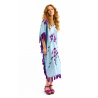 A 70's breeze is blowing through our spring-summer 2026 collection, accessorizing our outfits with a flower power touch that we love. LUVIA, a long caftan with short sleeves, is one of the emblematic pieces.