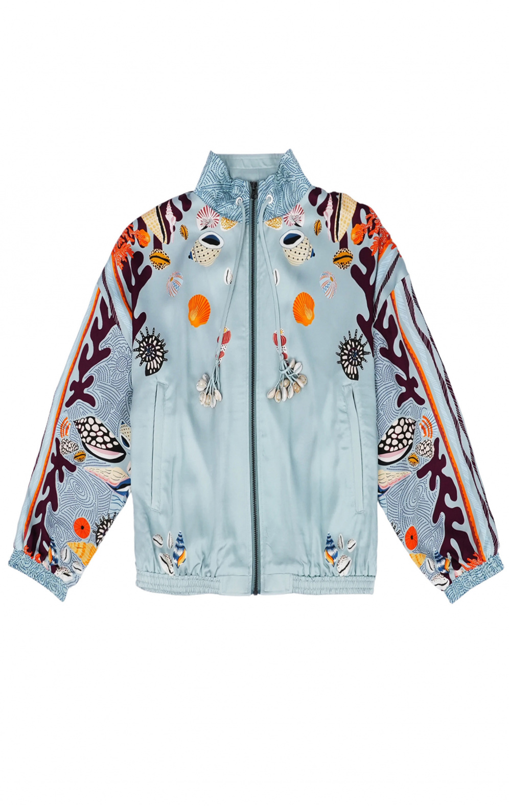 A sure-fire favorite in this spring-summer 2026 collection, the JYSKO jacket plays messenger. On the back, a message of love is proudly displayed in large, colorful chenille embroidery for a streetwise touch full of good vibes.