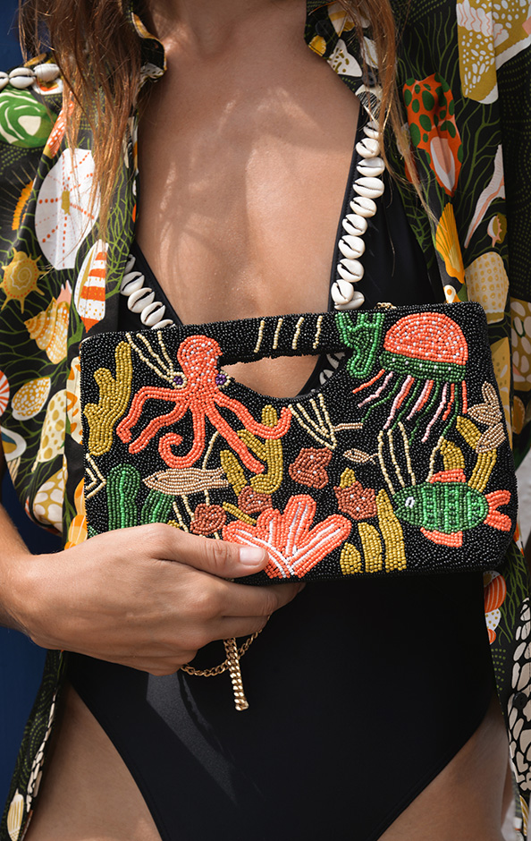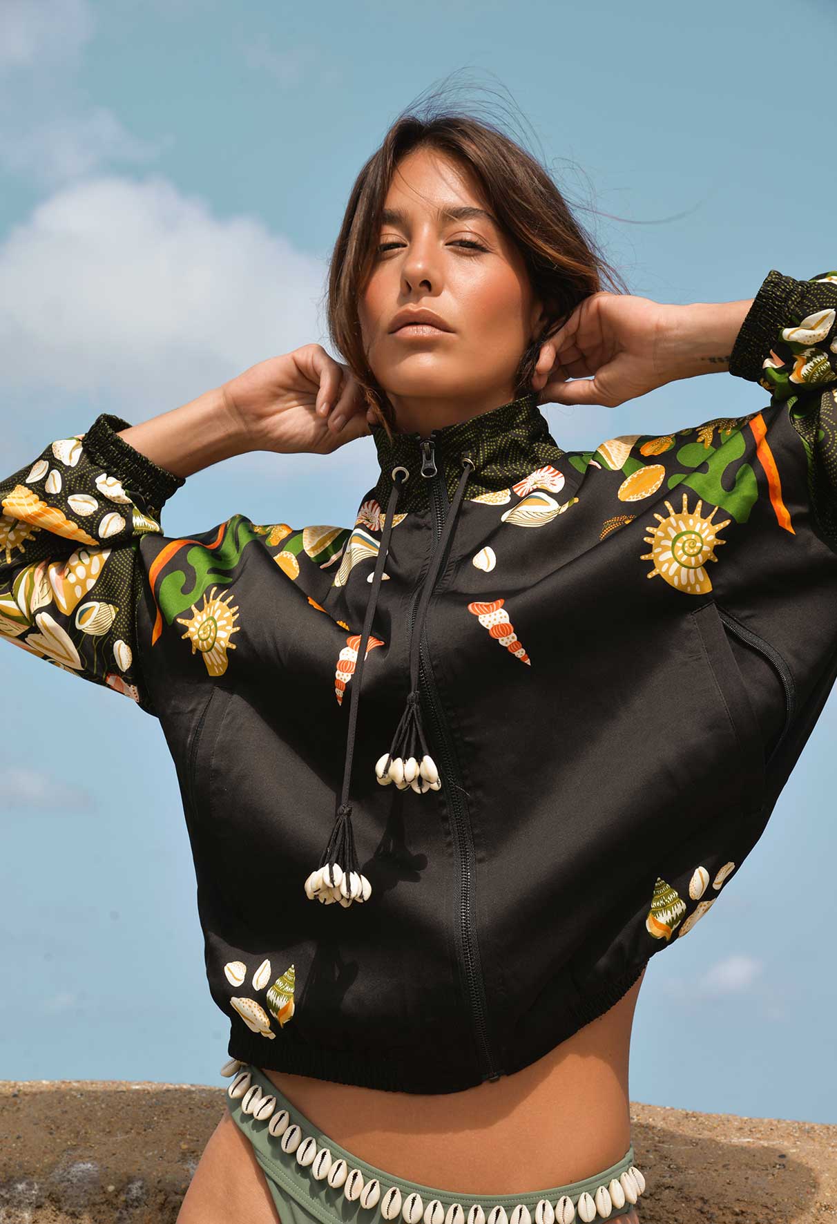 The season opens with a sensual ode to light and freedom. For this first chapter of the S26 collection, Wild takes you to Bahia, where the beaches of Rio are adorned with pearly shells and spirits dance under the blessing of Corcovado. Our prints celebrate the natural treasures of the Brazilian coastline. Echoing the exotic shells gathered on the warm sand, the patterns vibrate on flowing dresses, oversized bomber jackets, and airy kaftans. Each piece is designed to be a postcard you can wear: light, precious, and irresistibly free.