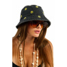 Perfectly suited to a sunny, nonchalant style, our BOBO bob is available in four colors, offering a wide variety of ways to wear it. It's here in black, embellished with pop-yellow smiley faces.