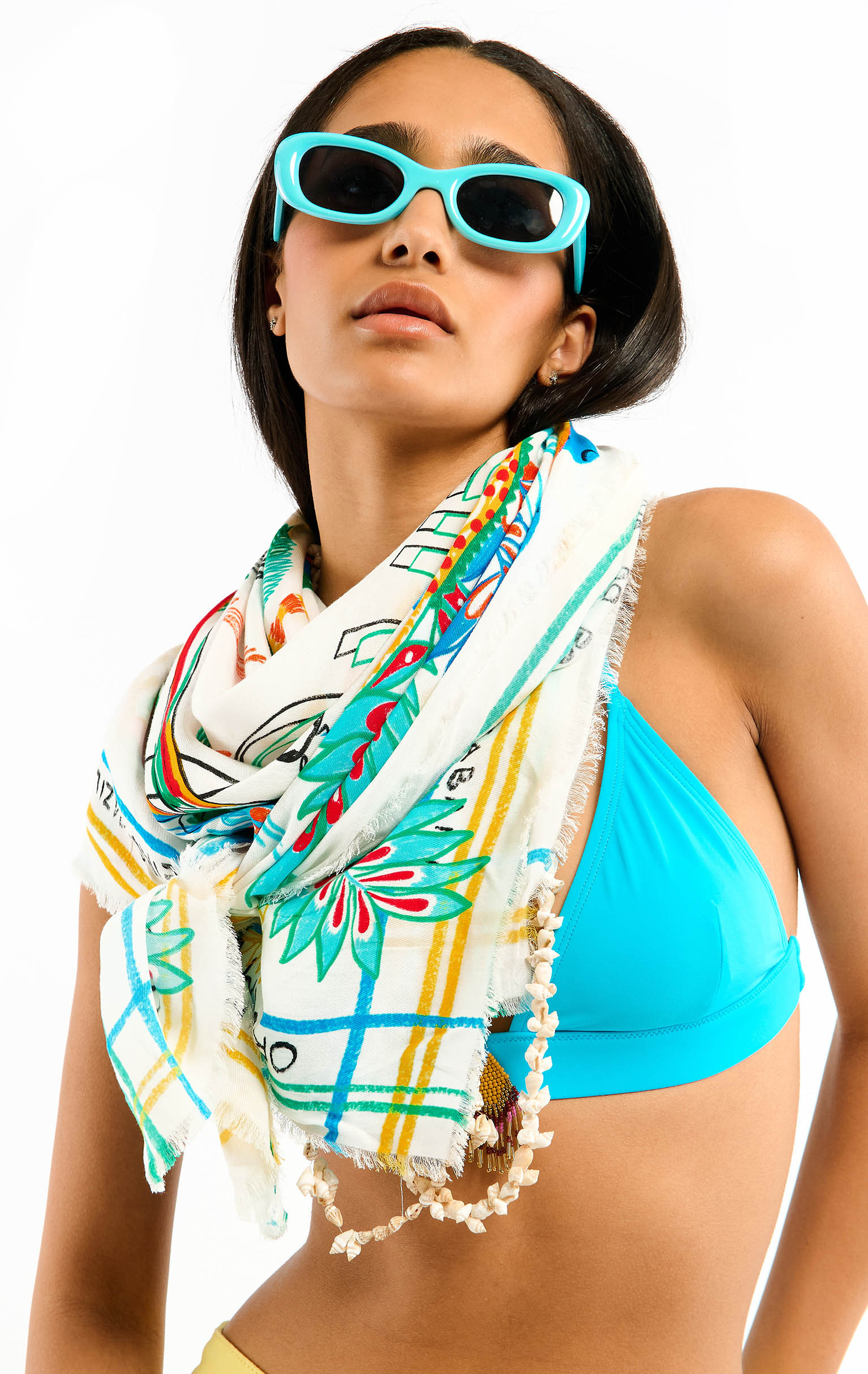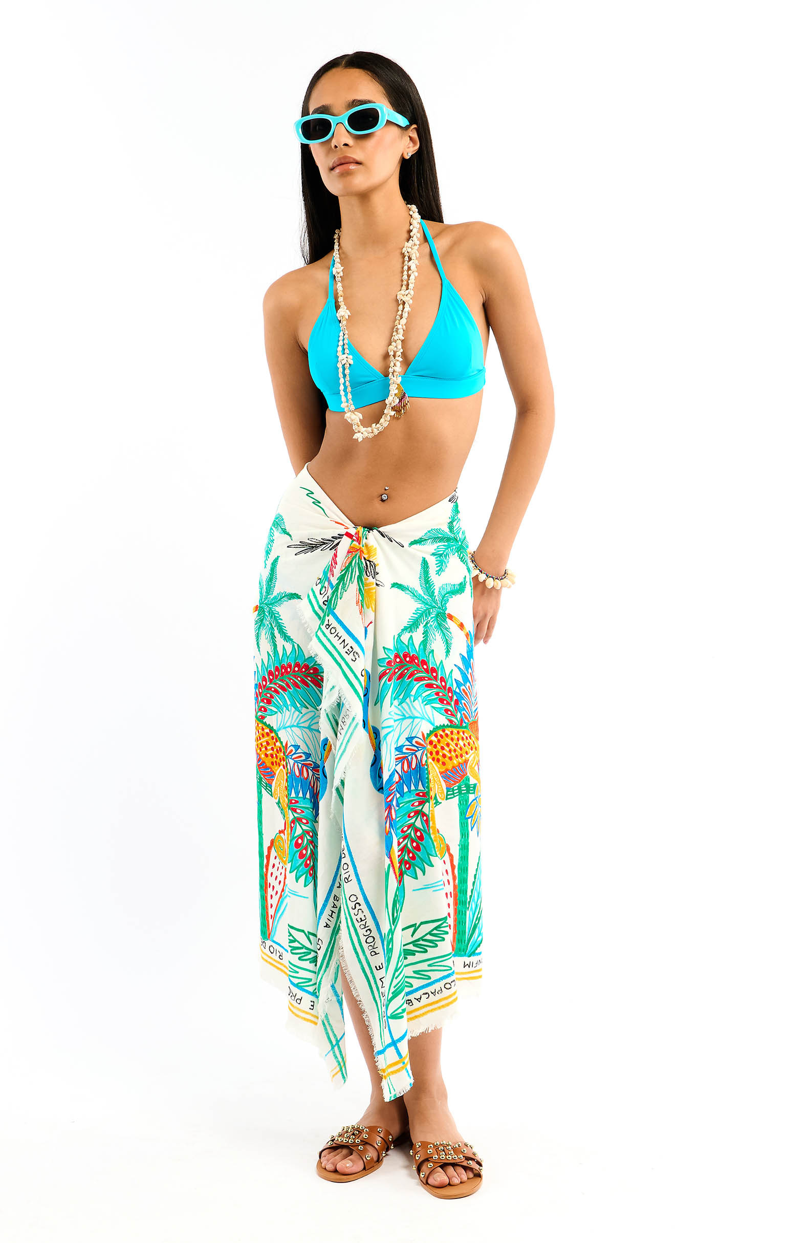Our handmade scarves feature exclusive designs by our studio, designed to enhance your wardrobe. Imagined in a colorful, pencil style, the BAHIA print embodies the essence of Brazil, playing on all the "made in Rio" clichés we love at Wild.
