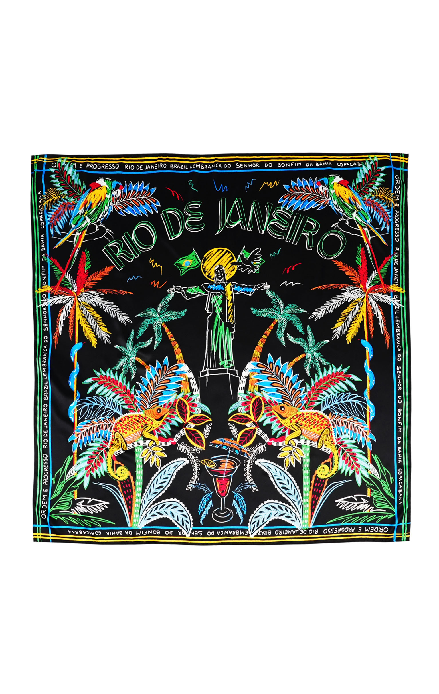 Our handmade scarves feature exclusive designs by our studio, designed to enhance your wardrobe. Imagined in a colorful, pencil style, the BAHIA print embodies the essence of Brazil, playing on all the "made in Rio" clichés we love at Wild.