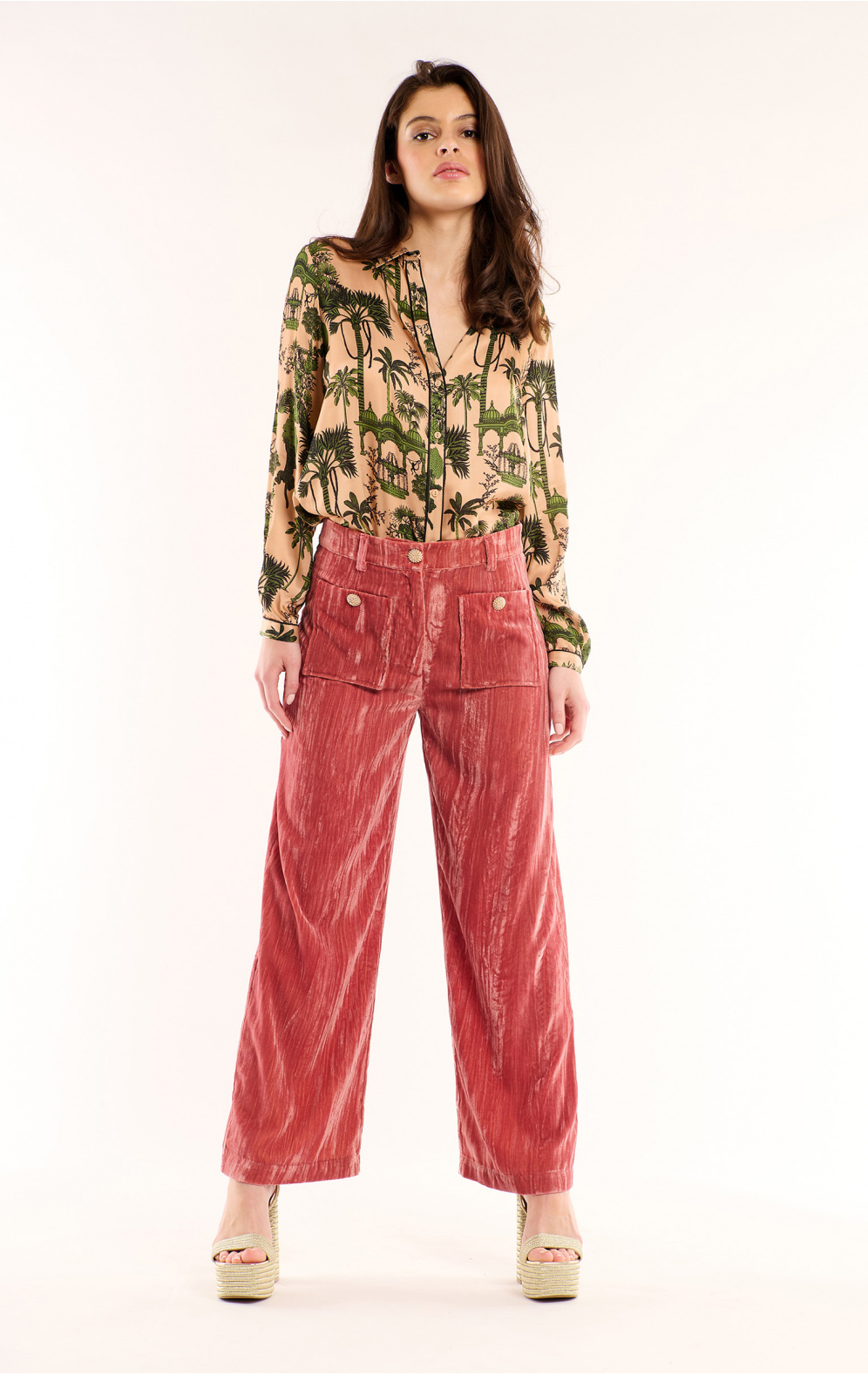 On teste des centaines de tissus pour trouver le parfait toucher, la juste élasticité. On choisit avec soin des couleurs qui ont du peps, car l’effet optique de la couleur n’est jamais inintéressant sur un pantalon flare. La couleur guide le regard, le toucher guide la main, la coupe quant à elle, guide le reste du corps, et c’est là son moindre effort ;-)