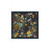 Mini foulard décoré d'un dessin sur le thème des fonds marins merveilleux, dans les tons noir, vert bouteille, ocre, anis, kaki, chocolat.