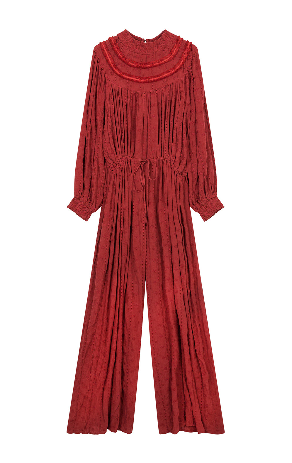 Robe courte en viscose entièrement brodée de petits motifs point de croix. Son col victorien à smoke remonte légèrement sur le décolleté, et ses larges manches ballon se resserrent aux poignets. Sa coupe babydoll oversize et les poches sur les côtés lui donnent un look vintage far-west.