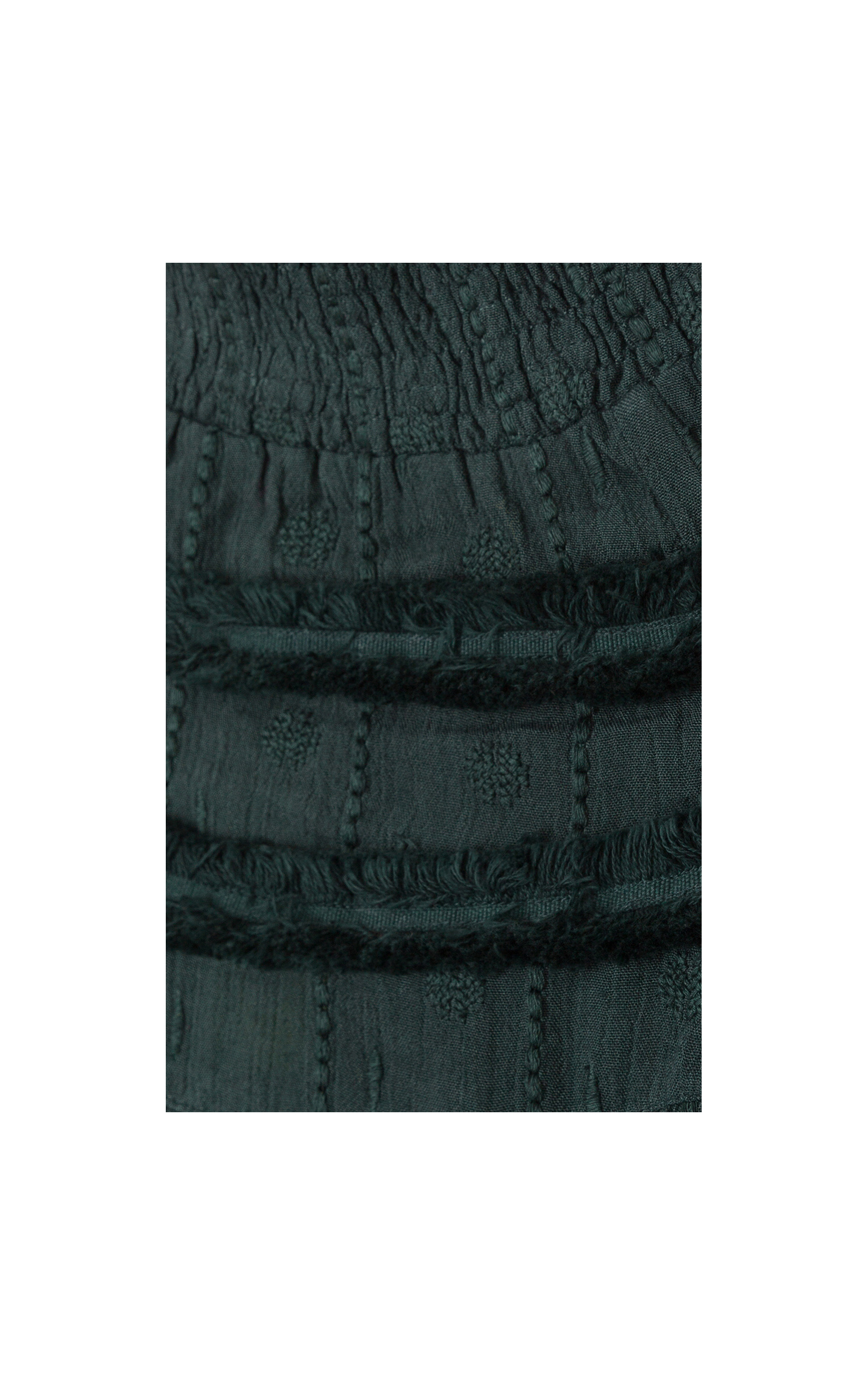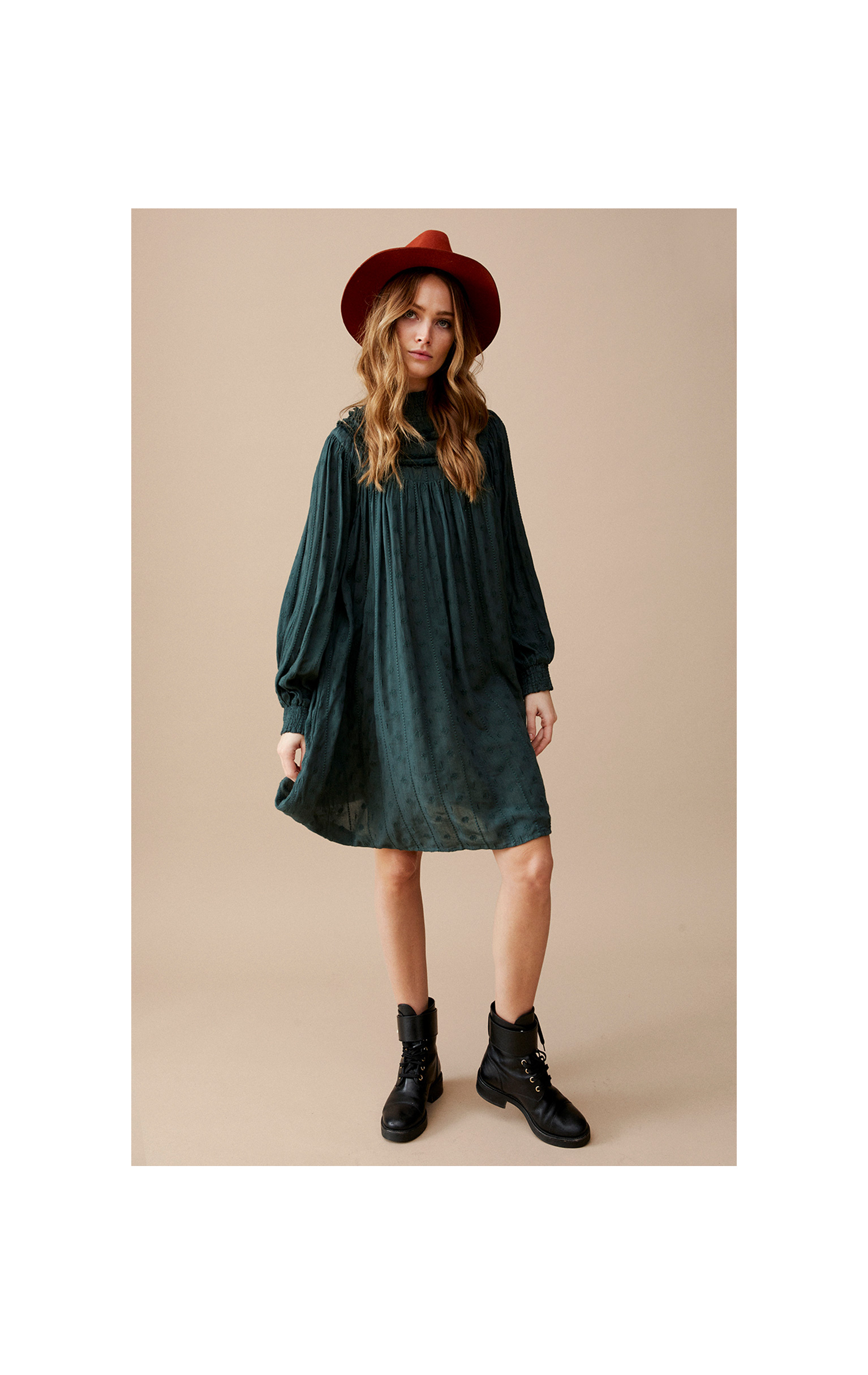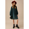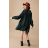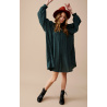Robe courte babydoll en viscose brodée de couleur vert bouteille.