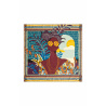Mini-foulard représentant le portrait d'une antillaise sur fond de décor des îles. Dans les tons bleu paon, vert amande, jaune, bordeaux et aubergine.