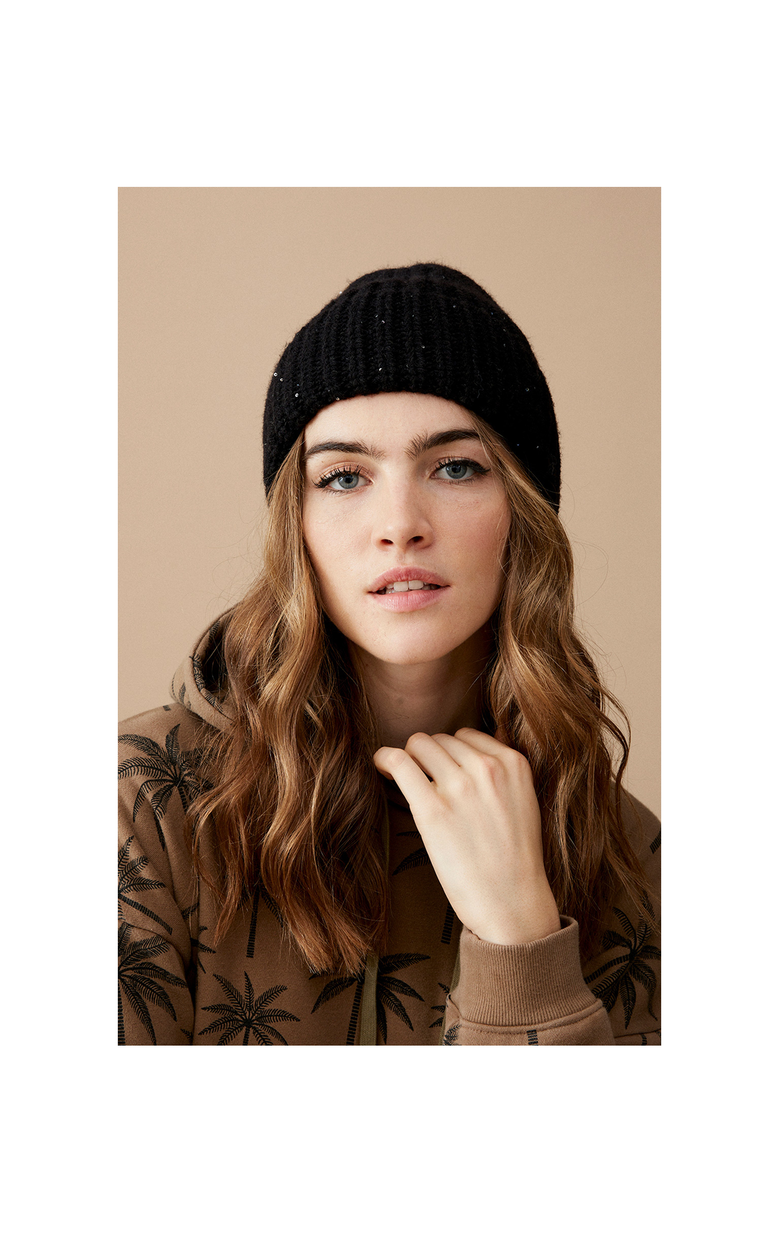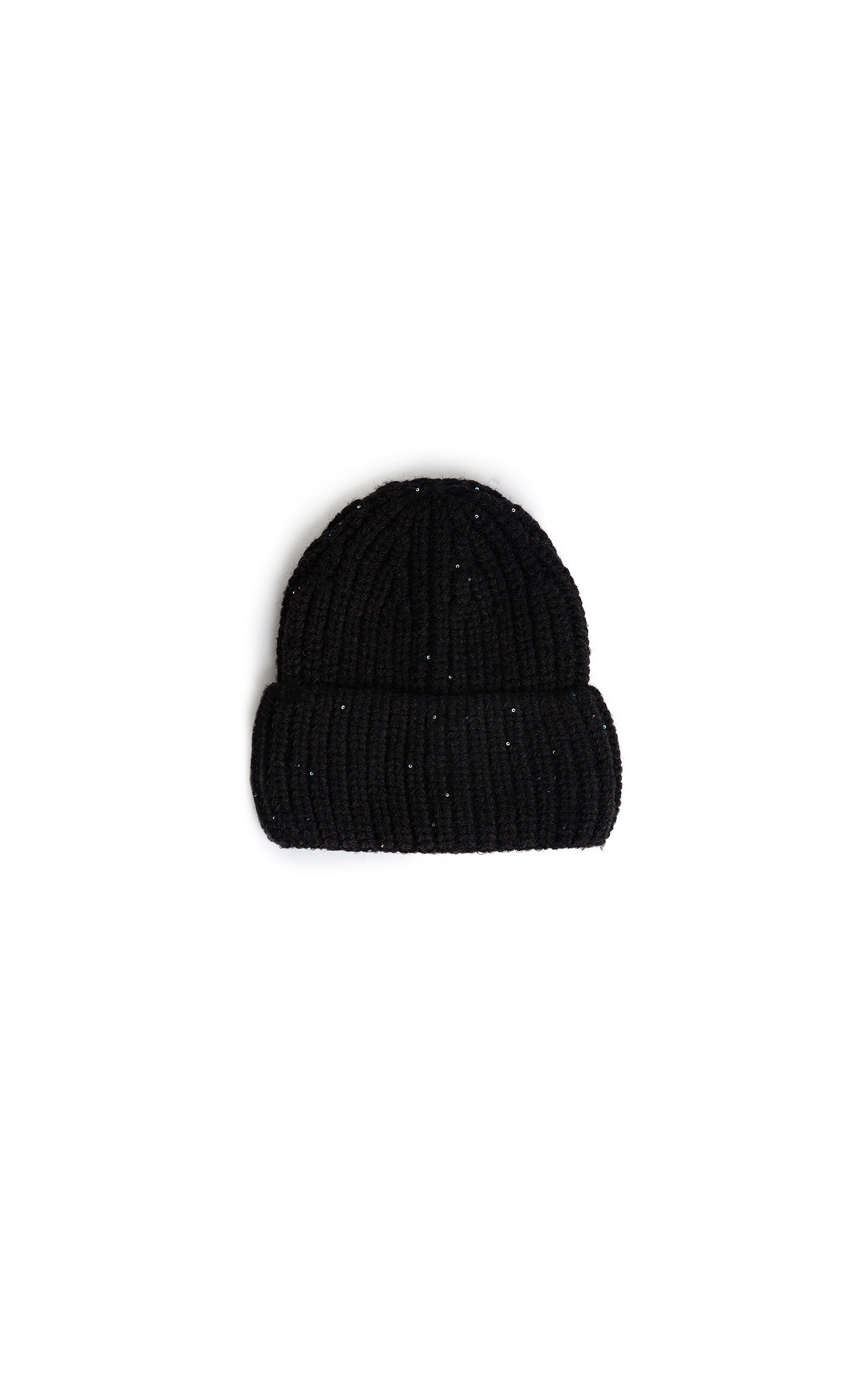 Bonnet en maille épaisse et très douce, avec de petits sequins dans la maille.