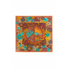 Petit foulard en matière recyclée, à l'esprit résolument seventies dans les tons brique, bordeaux, ocre, turquoise et vert émeraude, rappelant les illustrations psychédéliques des années 70.