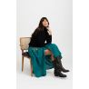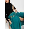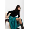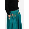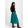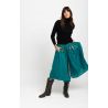 Adoptez cette jupe 7/8 évasée de couleur vert émeraude, qui se ferme de haut en bas par des petits boutons.