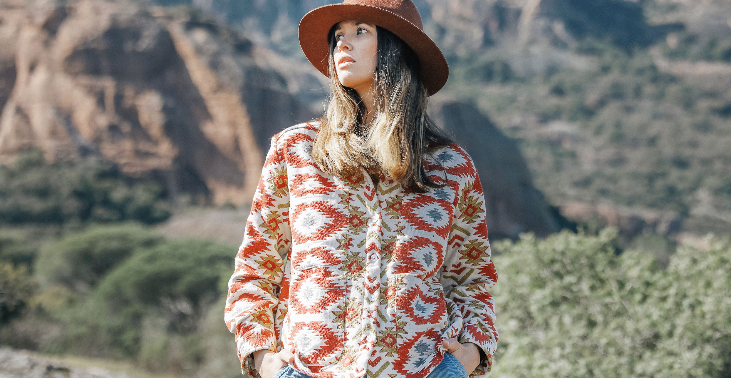 Plaine du Texas en vue, désert et palmier (of course), vous revêtez notre collection Navajo. Le retour à l'essentiel, l'essence même Wild. Le Navajo et son tissu jacquard ! Let's go girl ! Affrontez les saisons avec style, you're powerful. Épaulettes soulignées et formes géométriques, une collection de caractère tout droit sortie du Far West.
