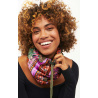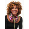 Snood ultra-doux en imprimé de notre foulard Zoulou dans les tons kaki, lilas, corail, noir, orange, et doublé polaire sur la peau pour avec chaud tout l'hiver avec style.
