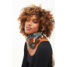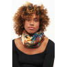 Snood ultra-doux en imprimé de notre foulard Zoulou dans les tons beige, bleu marine, noir, rouille, turquoise, et doublé polaire sur la peau pour avec chaud tout l'hiver avec style.