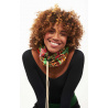 Vous allez adorer notre tour de cou extérieur en foulard imprimé, doublé polaire pour les jours les plus longs d'hiver. Vous ne pourrez plus dire que l'hiver est monotone avec ces snoods utra colorés. Wild est encore à la pointe de l'inovation avec cet accessoire idéal pour rester chic et bien au chaud. Il est ici confectionné avec notre foulard Zoulou, représentant un paysage concentrique comme un cercle solaire lumineux, dans lequel on retrouve une végétation luxuriante, ornée de palmiers, de couronnes de plumes, de girafes et autres chimpanzés. On aime ce paysage africain fantastique traité comme une gravure, avec ses bordures noires pour une explosion des couleurs.