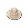 Décliné en deux couleurs, naturelle et noire, notre chapeau FYAN se porte de jour comme de nuit, pour un look casual ou plus habillé. Structuré d'une élégante bande de tissu sur le tour de tête, il se pare également d'une bande de perles multicolores aux nuances inspirées de l'esthétique navajo.