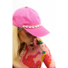 Notre casquette CAPY, dans un esprit estival et marin, se pare d'une rangée de cauris brodés sur le dessus de la visière. Fidèle à l'amour de la marque pour les couleurs, elle se décline en neuf couleurs. Elle est ici dans sa version rose.