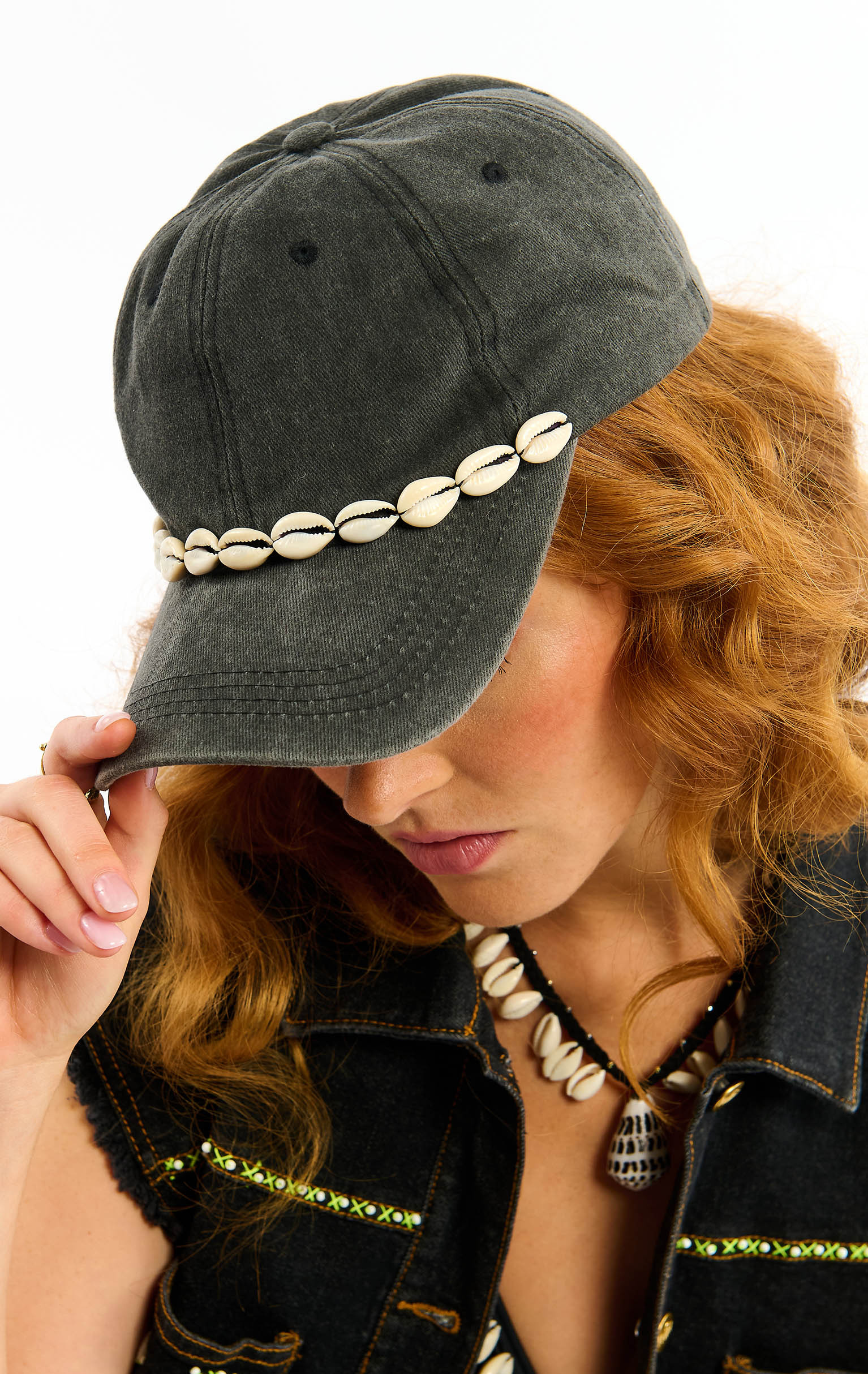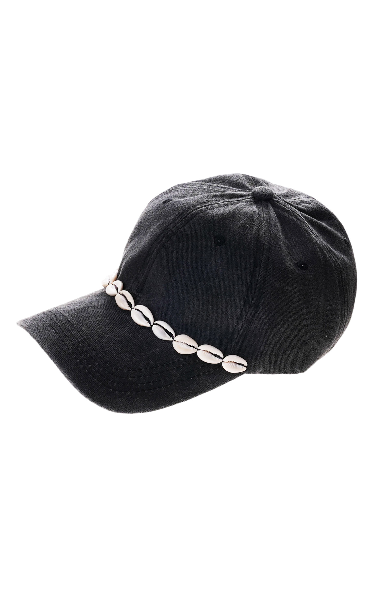 Notre casquette CAPY, dans un esprit estival et marin, se pare d'une rangée de cauris brodés sur le dessus de la visière. Fidèle à l'amour de la marque pour les couleurs, elle se décline en neuf couleurs. Elle est ici dans sa version noire.