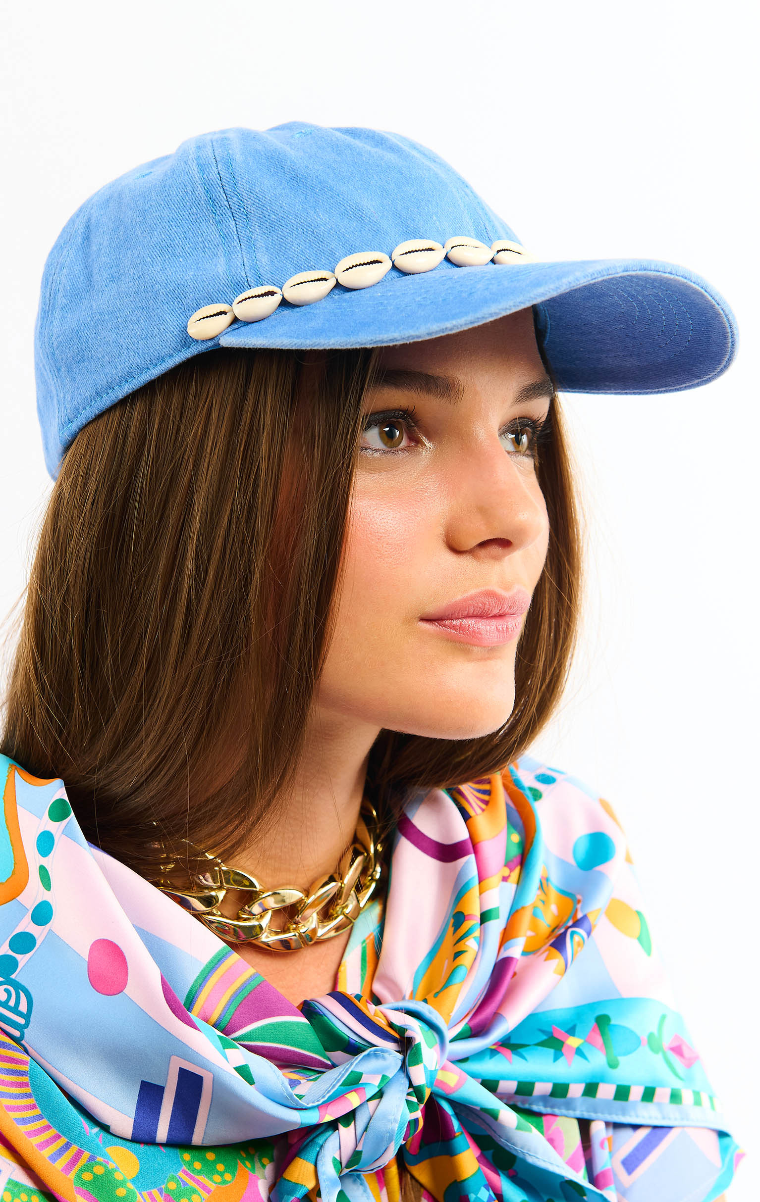 Notre casquette CAPY, dans un esprit estival et marin, se pare d'une rangée de cauris brodés sur le dessus de la visière. Fidèle à l'amour de la marque pour les couleurs, elle se décline en neuf couleurs. Elle est ici dans sa version bleue.