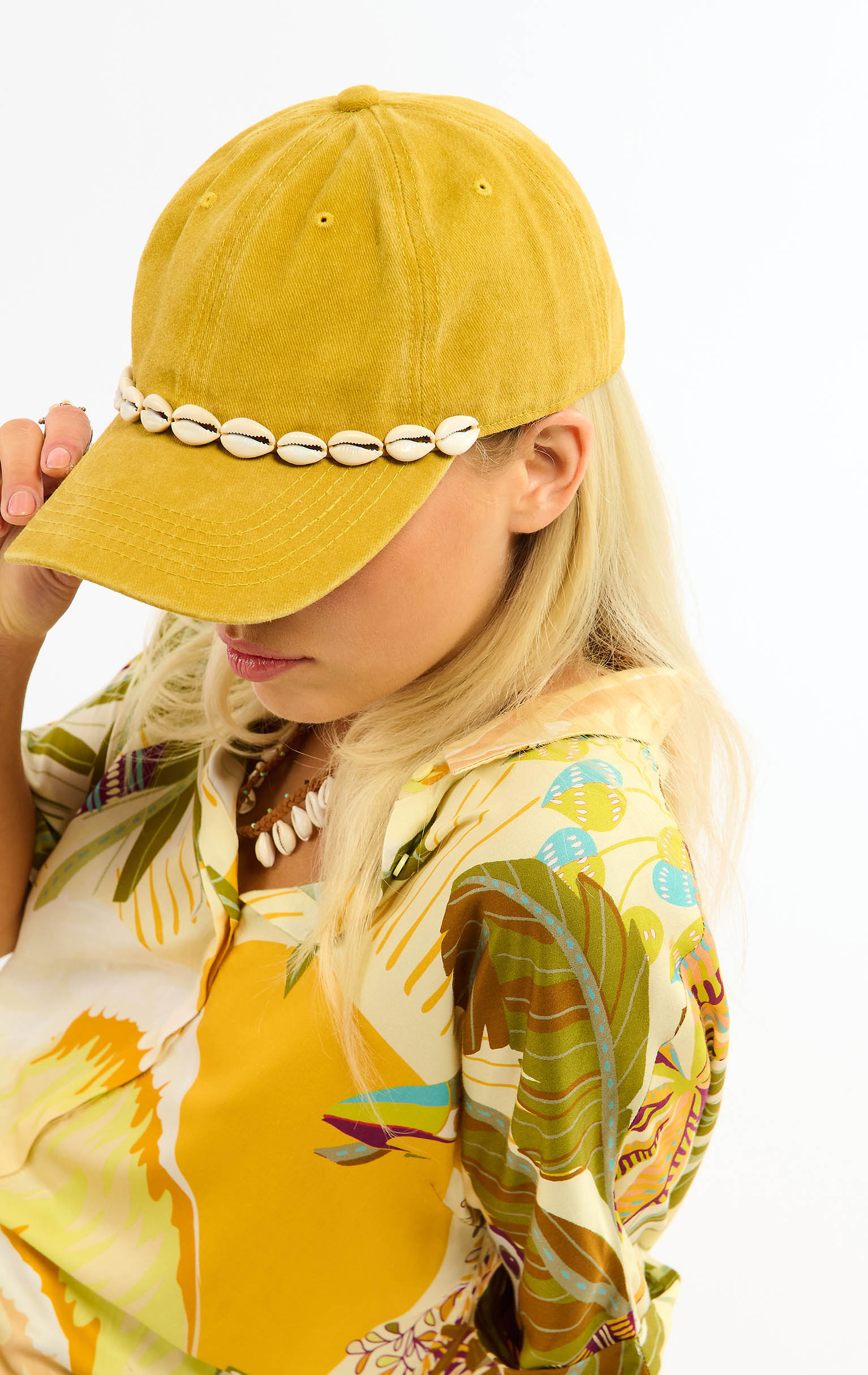 Notre casquette CAPY, dans un esprit estival et marin, se pare d'une rangée de cauris brodés sur le dessus de la visière. Fidèle à l'amour de la marque pour les couleurs, elle se décline en neuf couleurs. Elle est ici dans sa version jaune.