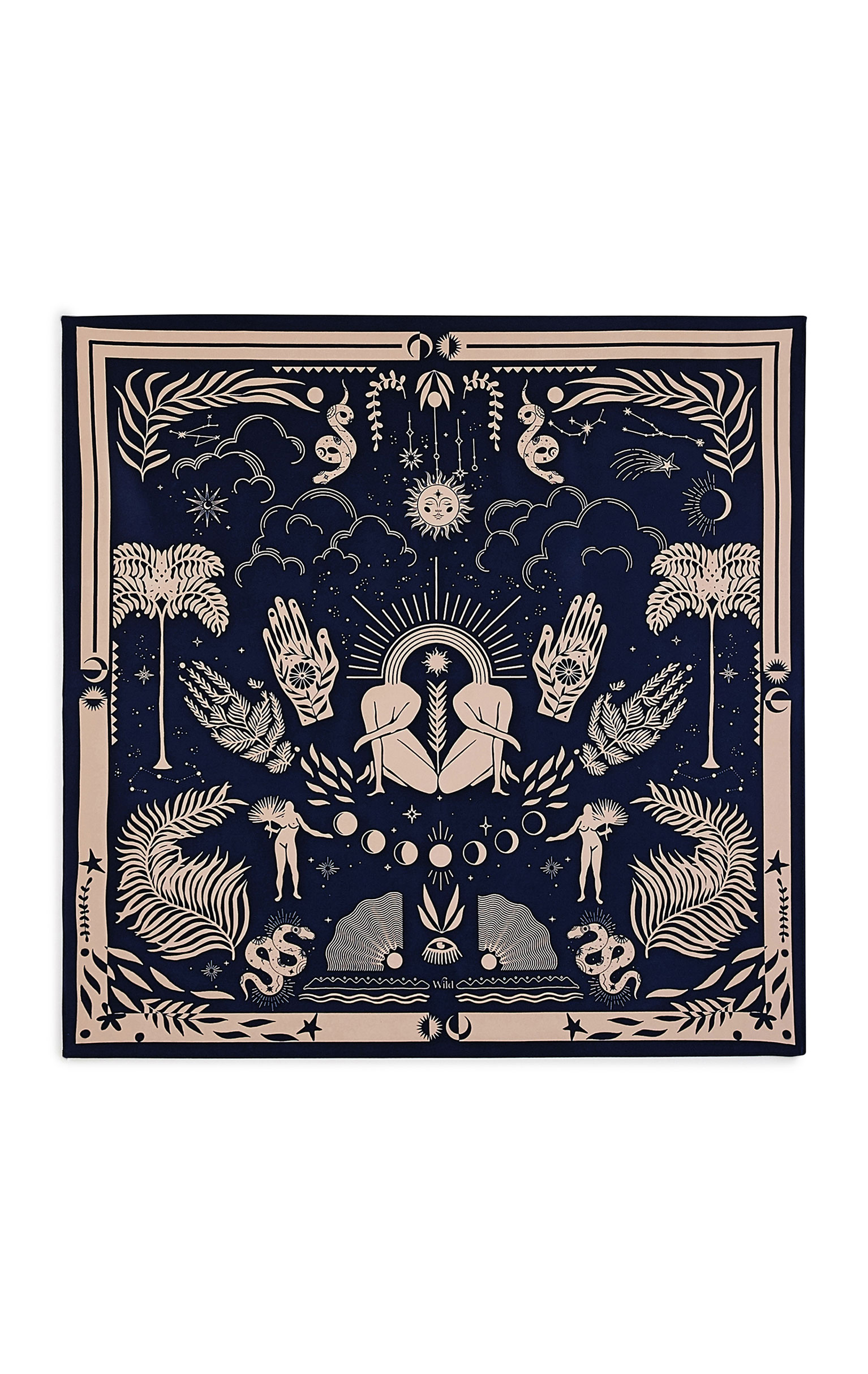 Nous ne pouvions pas attendre plus longtemps pour vous présenter cette composition exclusive ! Elle représente les éléments fondamentaux de la vie : l'eau, l'air, le feu et la terre. Vous pouvez également y voir des symboles comme des étoiles et les personnages d'Adam et Eve. Ce dessin est une véritable ode à la vie ! Une pièce bicolore dans les tons bleu marine et blanc cassé.