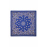 Notre foulard PAISLEY arbore fièrement ce motif évoquant une goutte d’eau stylisée agrémentée de décorations florales et de motifs sinueux. Il se décline dans les trois tailles habituelles de WILD avec la particularité d’avoir pour chaque taille la même composition, laine et modal. Pour les trois formats, ils sont accessoirisés de studs métalliques au centre et sur les côtés et seules les grandes tailles sont frangées sur les bords. Il existe en sept couleurs. Dans le coloris bleu, le fond est bleu marine et le motif paisley est écru et safran.