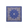 Notre foulard PAISLEY arbore fièrement ce motif évoquant une goutte d’eau stylisée agrémentée de décorations florales et de motifs sinueux. Il se décline dans les trois tailles habituelles de WILD avec la particularité d’avoir pour chaque taille la même composition, laine et modal. Pour les trois formats, ils sont accessoirisés de studs métalliques au centre et sur les côtés et seules les grandes tailles sont frangées sur les bords. Il existe en sept couleurs. Dans le coloris bleu, le fond est bleu marine et le motif paisley est écru et safran.