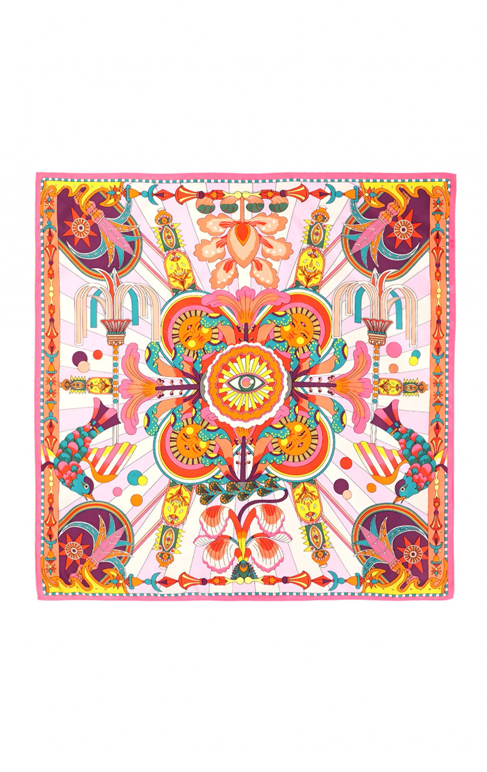 Entièrement réalisée dans une viscose satinée qui lui confère une allure précieuse et assumée, cette pièce au chic ultime s’architecture autour de deux manches larges, d’inspiration kimono, et s’habille de notre imprimé ENCHANTERED aux accents psychédéliques et rétro. Déclinée en trois couleurs, elle est ici dans sa déclinaison bleue où œil-pentacle, soleils aux visages poupons et univers psyché haut en couleur s’y mêlent avec panache dans des nuances de turquoise, jaune, orange, mauve, rose, violet, rouge carmin et bleu ciel.