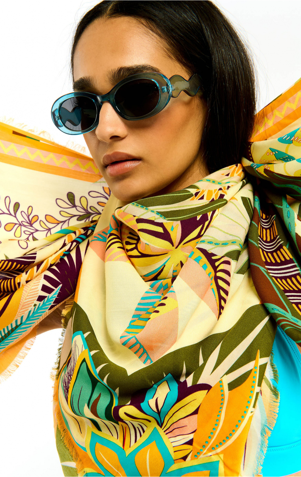 Les jaunes solaires, font vibrer les imprimés de la saison comme un sunset sur la baie de Rio. Une explosion de teintes tropicales qui habille nos chemises iconiques et foulards merveilleux dans un esprit à la fois sauvage et baléarique, entre jungle luxuriante et horizons infinis. Les caftans longs s’ornent de broderies perlées dorées évoquant des palmiers dansants. Quant aux chapeaux, sacs et pochettes, ils entrent dans la danse, colorés comme les rues de Salvador, festifs comme un carnaval de Rio. Les vestes richement brodées, se portent avec panache du lever au couchant, flirtant avec le jour comme avec la nuit. Avec Rio del Sur, Wild vous invite à un été sans frontière, où la joie brésilienne se fait matière, motif et mouvement.