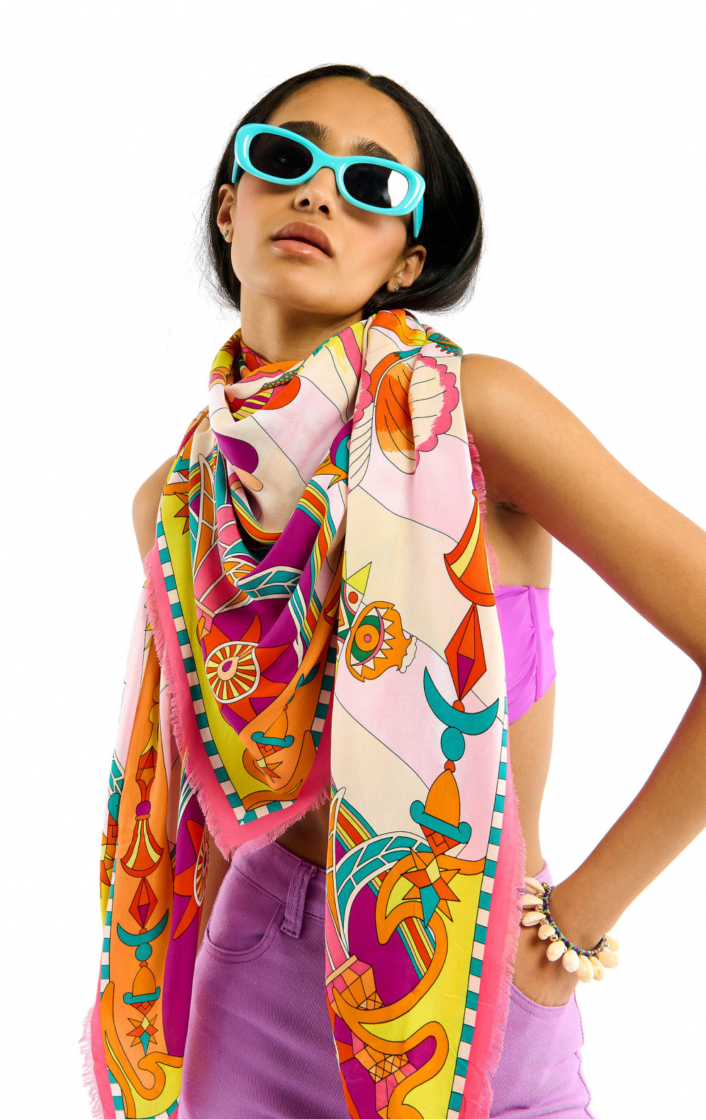 Les ensembles veste + jupe courte, inspirés des années 70, flirtent avec une esthétique bohème venue d’ailleurs. La menthe à l’eau adoucit les lignes, les vestes légères se portent en surchemise et déclinent une palette arc-en-ciel, comme les murs délavés par le soleil des villages de Tulum, Sayulita ou San Miguel de Allende. L’’imprimé phare est un clin d’œil à la mer turquoise de Holbox, mêlé à la végétation tropicale et aux motifs ondulants évoquant les vagues mexicaines. Les roses vifs et les rouges pimentés s’y mêlent comme sur un marché de bord de plage, entre chaleur et éclats. Avec Terra Nouva, on entend les accords de guitare d’une place animée, on ressent la poussière des chemins, la fraîcheur d’un cocktail sous un palmier dansant, la promesse d’une escapade improvisée. Wild S26 célèbre un été aux couleurs de l’Amérique Latine. Un été pour explorer. Un été pour rayonner. Un été Terra Nouva.