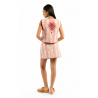 De forme trapèze, ELORA se structure grâce à ses deux poches plaquées sur le devant soulignées par un ruban festonné rouge. Elle se ferme par un zip dos et s'accessoirise d'un ruban au niveau de la taille pour un cintrage plus marqué.
